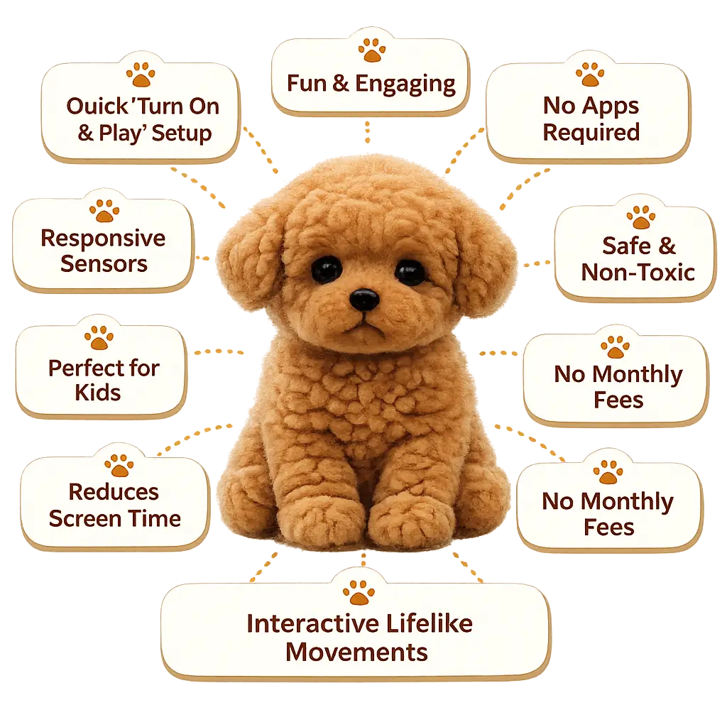 Realistic Behavior: Walks, barks, and wags its tail, simulating the feeling of having a real puppy.